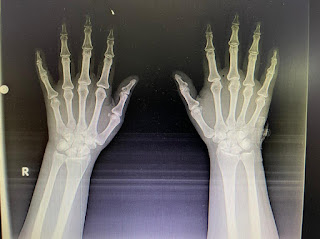 Patient was apparently asymptomatic 12 years back, then she complained of swelling of the uterus, abdominal pain and abnormal uterine bleeding, not subsided even on medication so, hysterectomy was done. Then, 3 years back, she developed fever, bilateral swelling and pain around the joints-(unable to make a fist)( ankle joint, elbow, wrist, small joints in fingers) for 3-4 months in the past 2 years